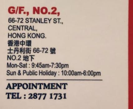 地址 : 香港中環士丹利街66-72號地下2號舖